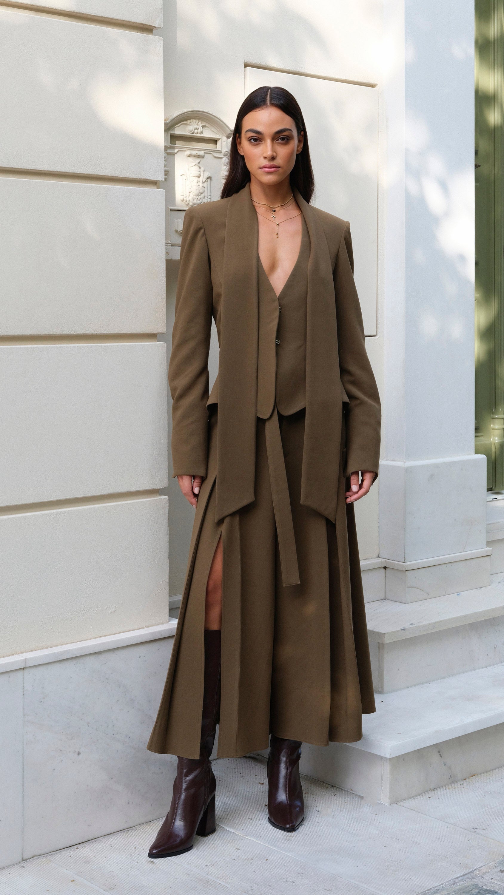 Malia Jacket & Mira Skirt-Pants Brown Set