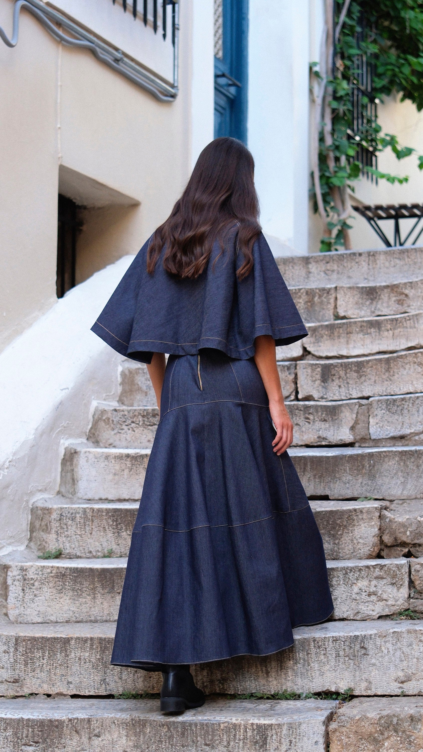 Selma Cape & Amal Skirt Denim Set